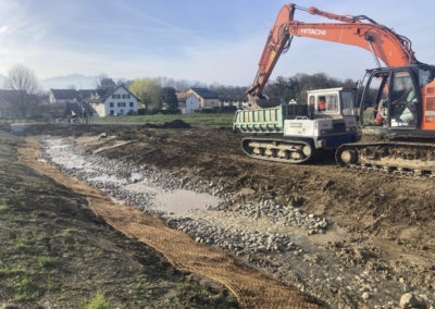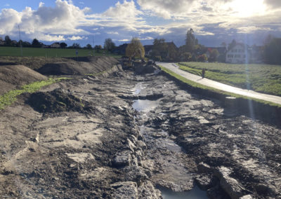 Situé sur la commune de Lully, ce projet de renaturation a été réalisé conjointement par le bureau BR+ (pilotage et aspects hydrauliques et routiers) et notre bureau pour ce qui est des aspects écologiques et environnementaux (faune et flore). Le projet s’est concentré sur trois axes principaux: