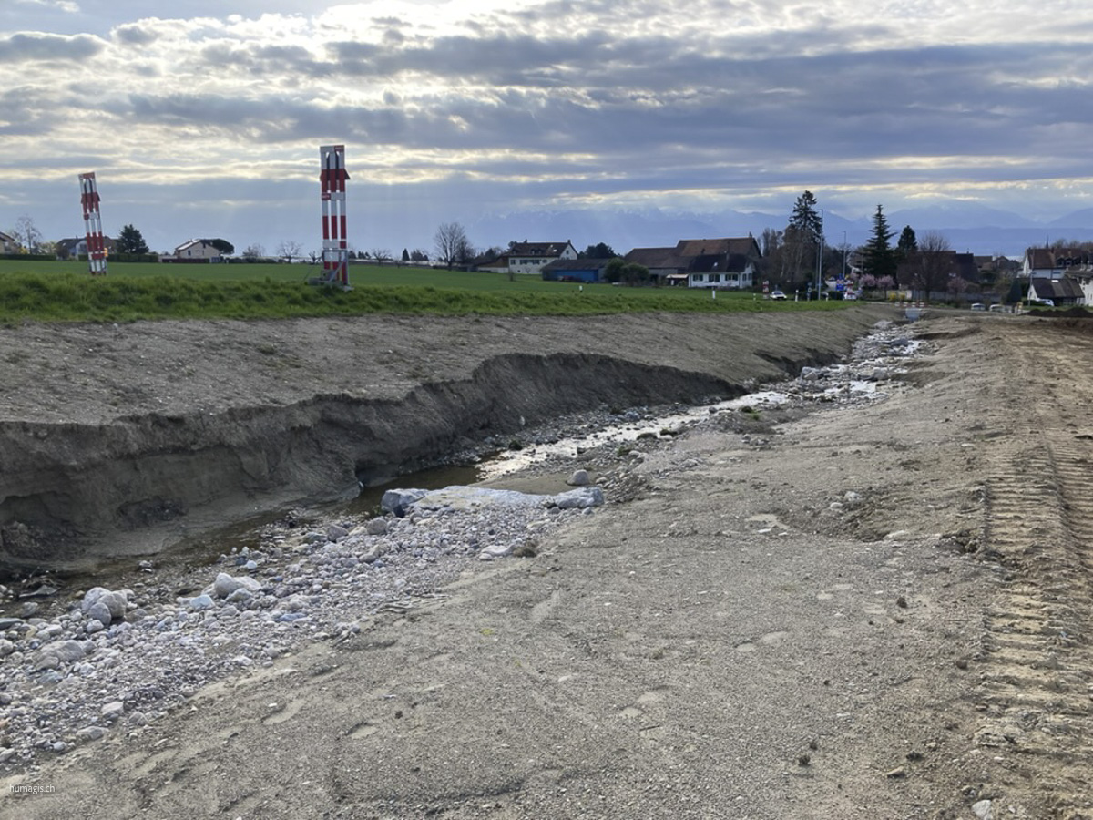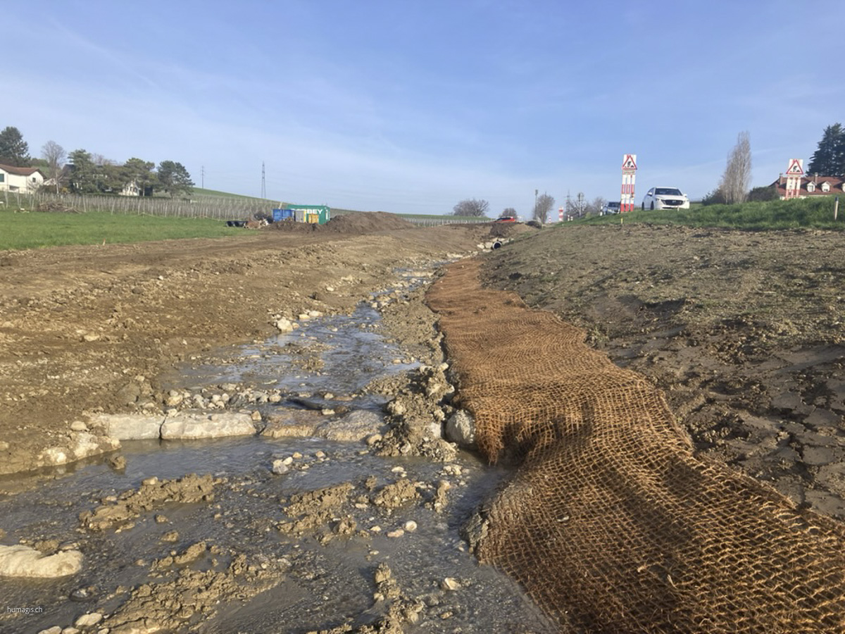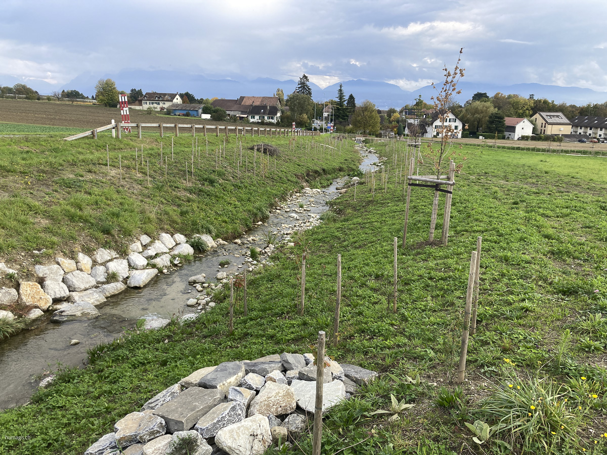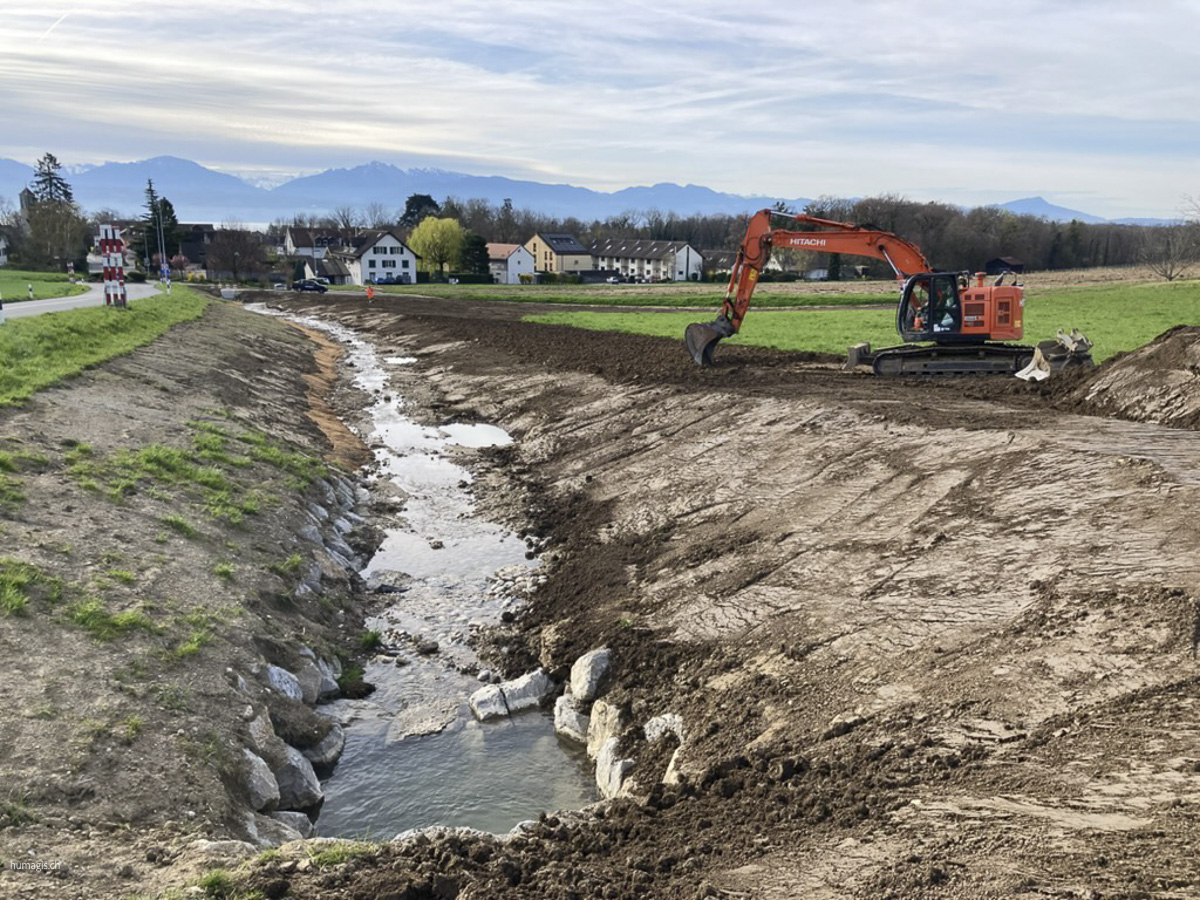 Situé sur la commune de Lully, ce projet de renaturation a été réalisé conjointement par le bureau BR+ (pilotage et aspects hydrauliques et routiers) et notre bureau pour ce qui est des aspects écologiques et environnementaux (faune et flore). Le projet s’est concentré sur trois axes principaux: