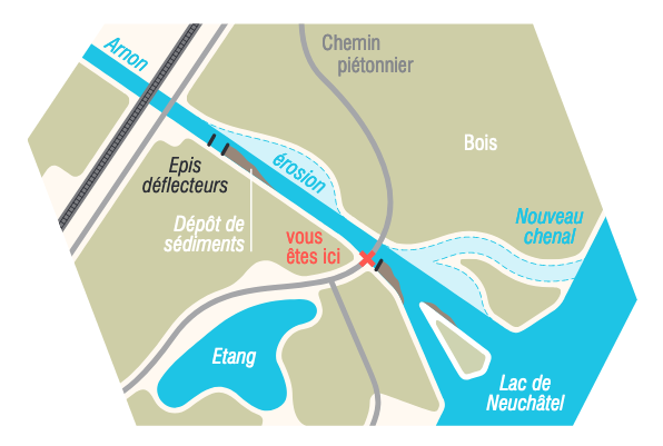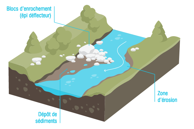 Les travaux ont consisté à creuser un nouveau bras en rive gauche et installer des structures qui favorisent les dépôts de sédiments.
